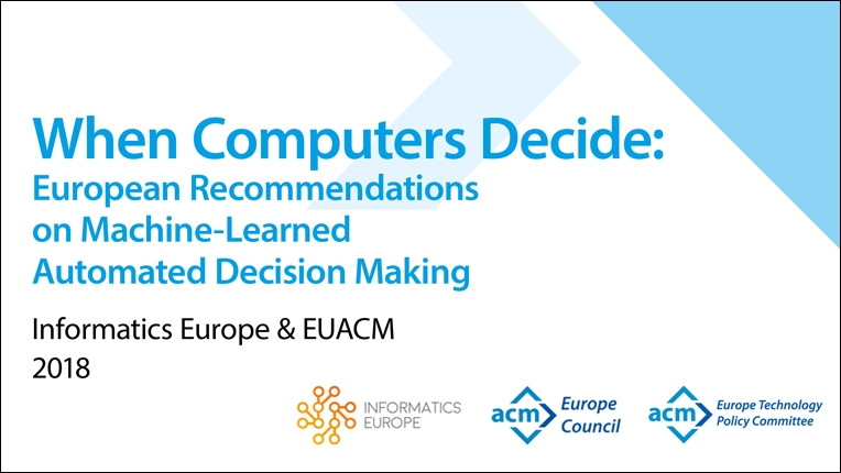 The white paper "When Computers Decide: European Recommendations on Machine-Learned Automated Decision Making" presents the views of the ACM Europe Technology Policy Committee and Informatics Europe (IE) on the challenges posed by the increasing presence of Machine Learning and Automated Decision Making (ADM) systems in almost every aspect of modern human life.