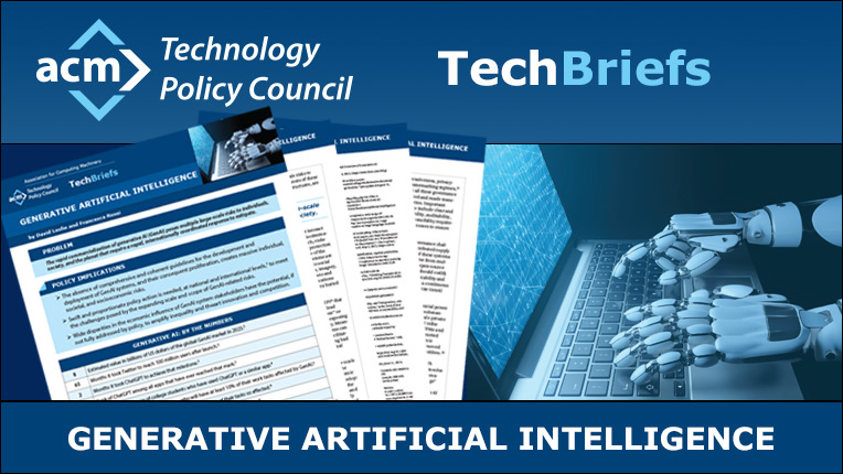 ACM's global Technology Policy Council (TPC) has released its "TechBrief: Generative Artificial Intelligence." The Techbrief is focused on the rapid commercialization of generative AI (GenAI) posing multiple large-scale risks to individuals, society, and the planet which requires a rapid, internationally coordinated response to mitigate.